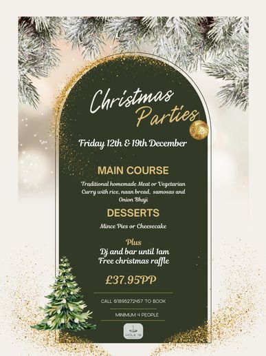 🎄 Host the Perfect Christmas Party with Us! Only £37.95pp 🎄 Choose from Curry nights or Traditional night On selected dates 🎄